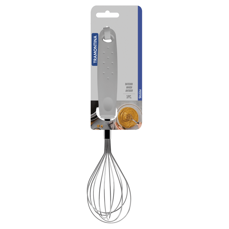 Batidor Manual Tramontina Utilitá en Acero Inoxidable con Mango de Polipropileno Blanco