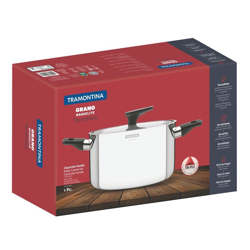 Cacerola Grano Baquelite honda de acero inoxidable con cuerpo triple, tapa y asas de baquelita de 24 cm y 5,8l Tramontina