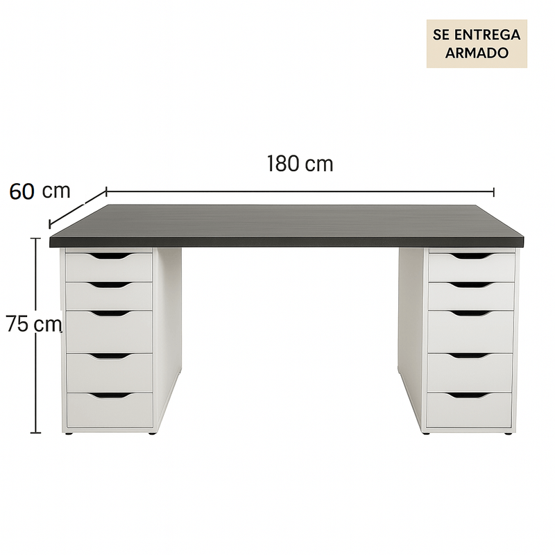 Escritorio Gamer de Melamina Negro Blanco 180cm