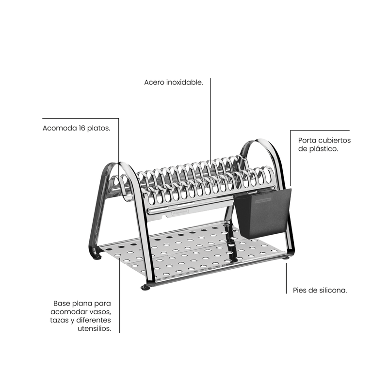 Escurridor de platos Tramontina Plurale de acero inoxidable con porta cubiertos negro