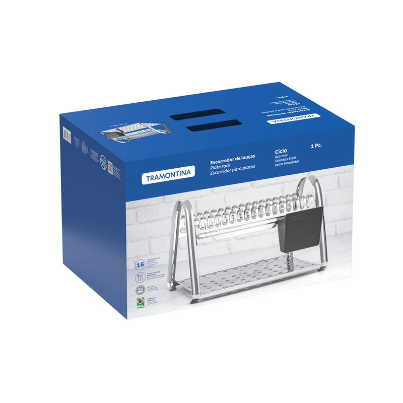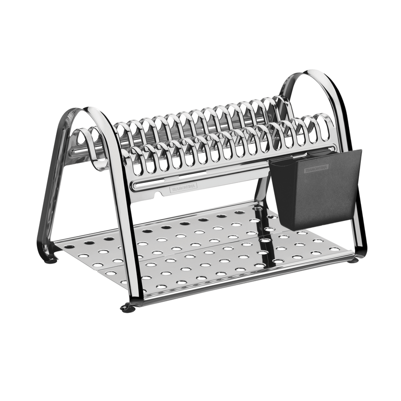 ElectrohogarPequeños ElectrodomésticosSet de CocinaEscurridor de platos Tramontina Plurale de acero inoxidable con porta cubiertos negro