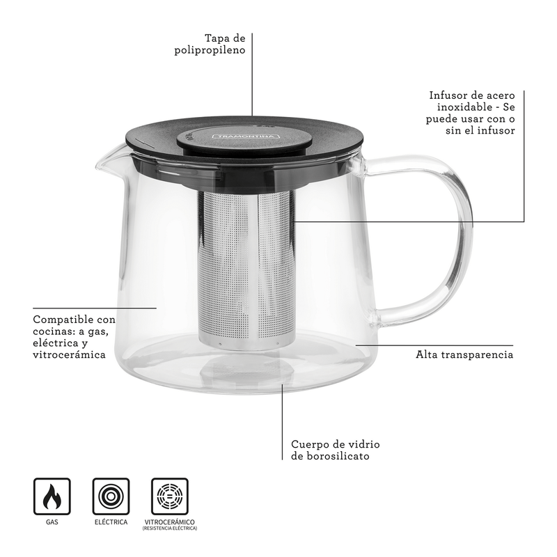 ElectrohogarPequeños ElectrodomésticosSet de CocinaJarra de vidrio y acero inoxidable con infusor de 900 ml Tramontina