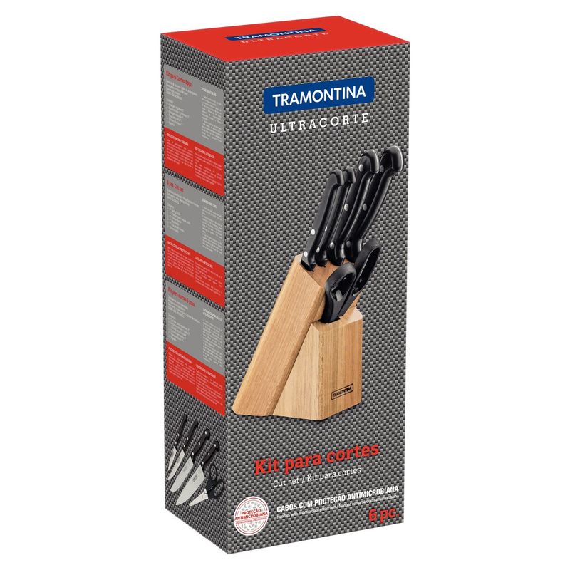 ElectrohogarPequeños ElectrodomésticosSet de CocinaJuego de Cuchillos Tramontina Ultracorte con Láminas de Acero Inoxidable, Mangos de Polipropileno negro y soporte de madera 6 Piezas