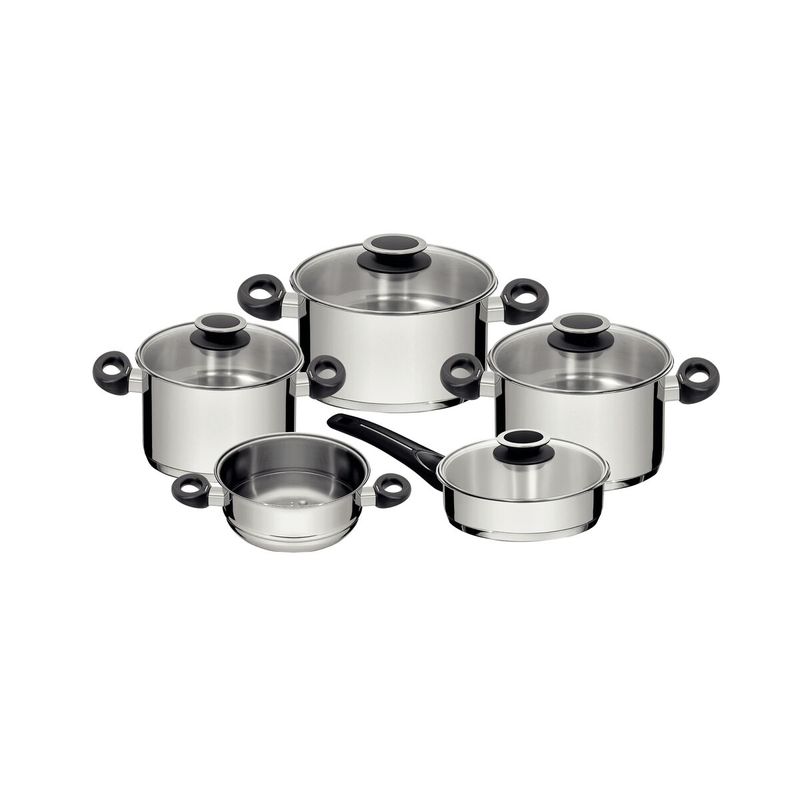 ElectrohogarPequeños ElectrodomésticosJuego de OllasJuego de Ollas Tramontina New Solar Baquelita de acero inoxidable fondo triple con mangos y asas de baquelita 9 piezas
