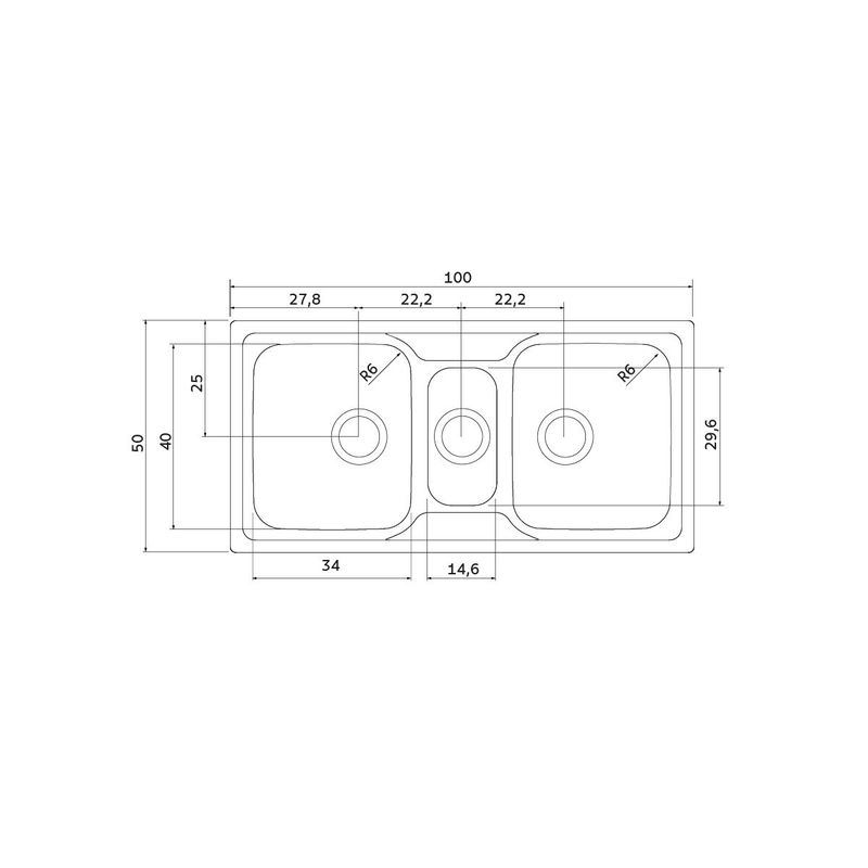 Lavadero Tramontina 2 cubetas y auxiliar de acero inoxidable con terminación cepillado 100 x 50 cm