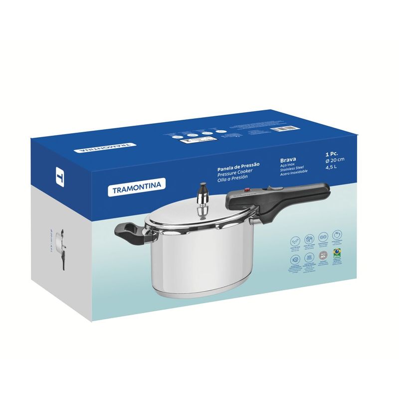 Olla a presión Brava de acero inoxidable con fondo triple de 20 cm y 4,5l Tramontina