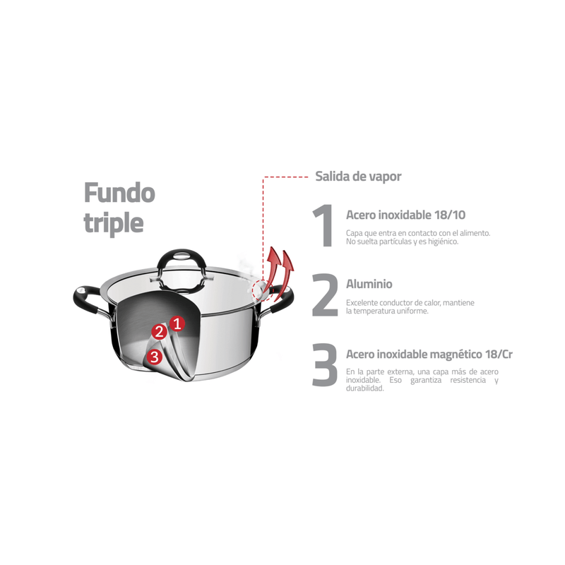 ElectrohogarPequeños ElectrodomésticosOlla ArroceraOlla alta Tramontina Duo Silicone de acero inoxidable fondo triple con tapa y asas de silicona, de 24 cm y 7,7 L